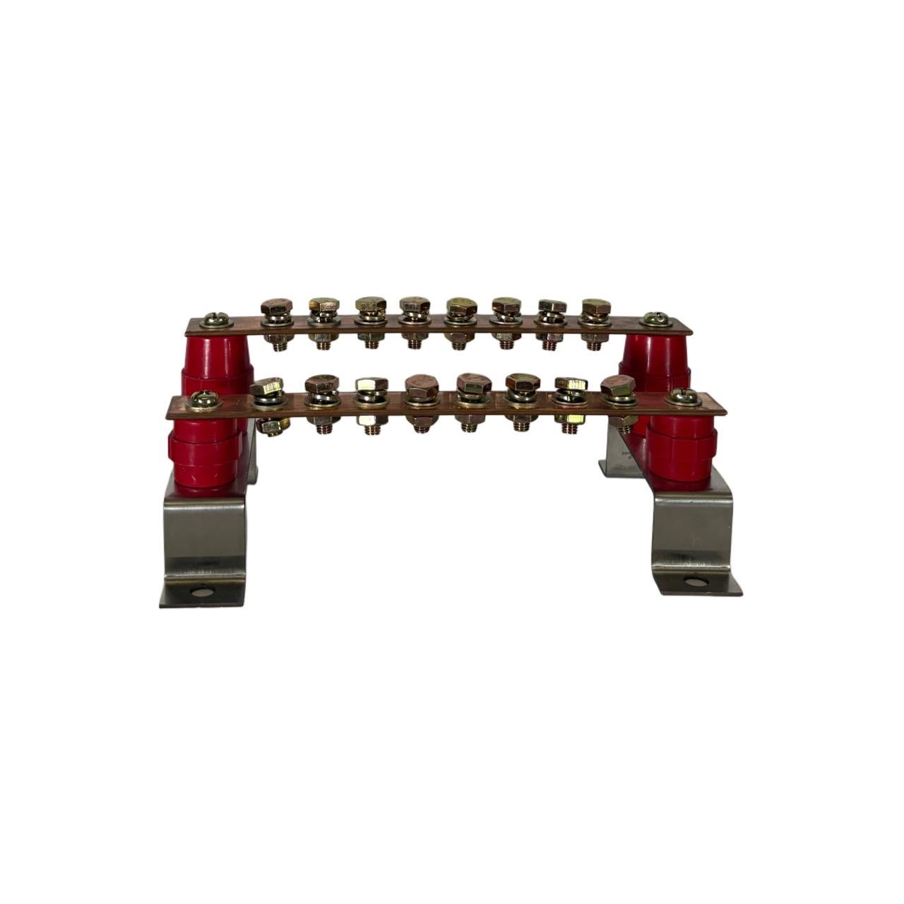 El Bus Bar de 900A está diseñado para distribuir corriente de forma eficiente y segura en bancos de baterías, inversores y sistemas solares de gran escala. Fabricado en cobre sólido de alta conductividad, cuenta con múltiples puntos de conexión atornillados para facilitar instalaciones organizadas y profesionales. Su base aislante y estructura elevada garantizan seguridad, durabilidad y manejo óptimo de altos amperajes.