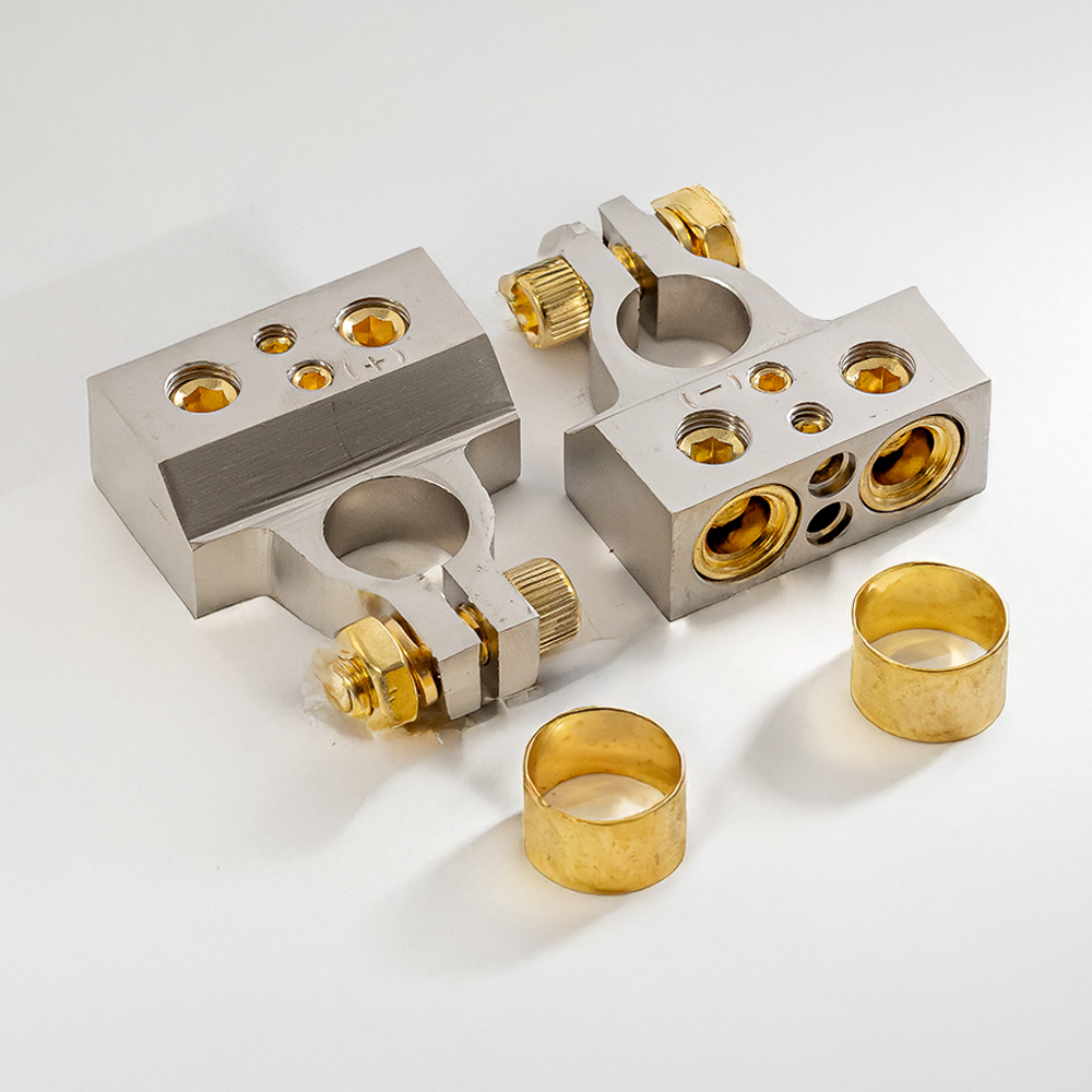 Este par de terminales de audio para batería está diseñado para vehículos con sistemas de sonido exigentes. Su estructura de alta conductividad y acabados de precisión aseguran una conexión firme, estable y sin pérdidas. Permiten múltiples salidas de cable, ideales para instalaciones con amplificadores, distribuidores o accesorios eléctricos. Ofrecen estilo profesional, compatibilidad universal y excelente rendimiento eléctrico.